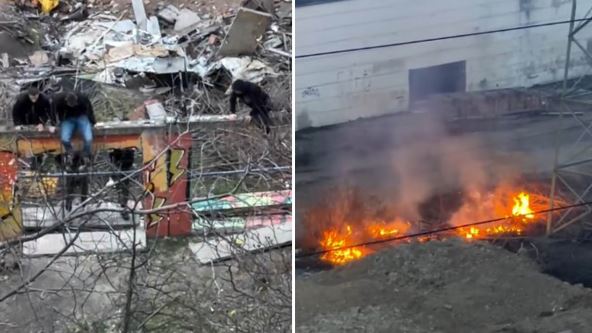 Sumnja se da su upravo oni podmetnuli požar. Na snimku se vidi i policijska patrola.
