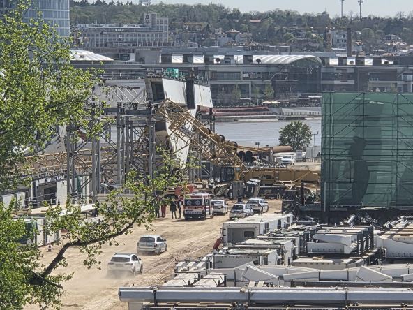 Kran je, kako saznaju mediji, udario u telehendler, odnosno manje vozilo koje takođe ima funkciju krana.