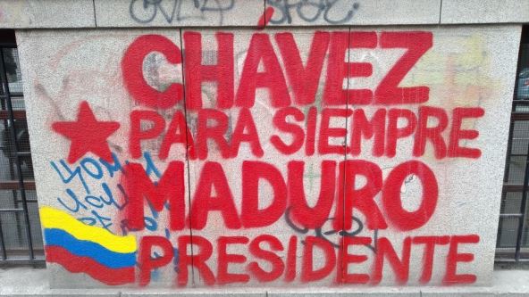 "Čaves zauvek, Maduro predsednik", "Maduro predsednik, idemo Venecuela", "Čaves živi, borba se nastavlja, Kosovo je Srbija", "Otadžbina, socijalizam ili smrt", napisano je crvenom bojom u blizini Skupštine grada, kod zgrade Pošte, u Stražilovskoj i na drugim mestima.