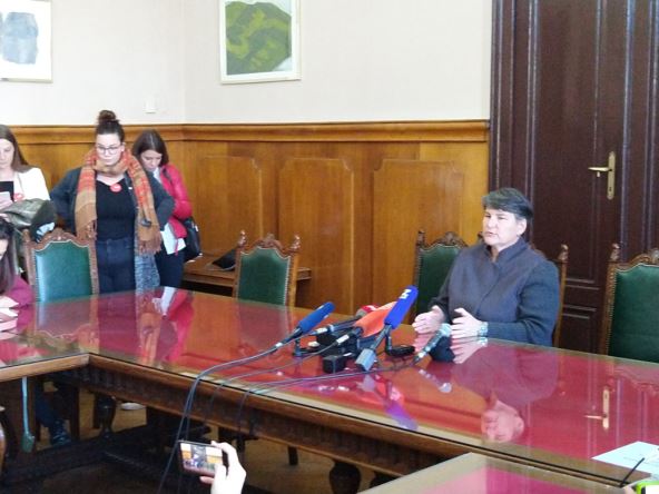 Studentkinja Mila Jovanović na konferenciji za novinare rekla je da studenti neće dozvoliti "da mala proceduralna greška" omogući Siniši Malom da obori odluku Etičkog odbora o njegovom, kako je dodala, "plagiranom doktoratu".