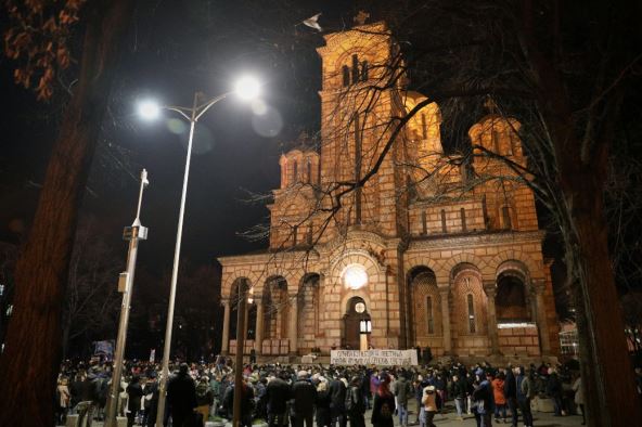 Predsednik Kluba studenata Pravnog fakulteta Nemanja Vučković ponovio je i večeras da je zahtev ove molitvene šetnje da se raskine ugovor iz 2014. godine na osnovu koga se u preko 40 srpskih ambasada nalaze i crnogorske diplomate.