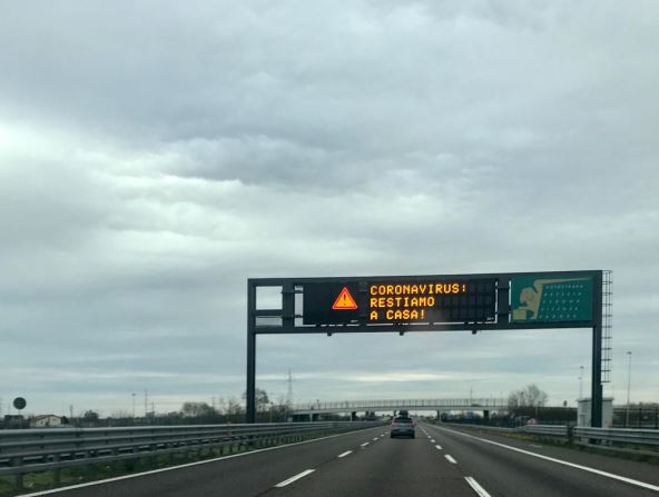 13.30h - Prolazimo pored Milana. Putarine plaćamo karticom i "Buongiorno" dobijamo samo od automata. I dalje je avetinjski prazno, mada se zadesi i poneki putnički automobil. Vozači nose maske.