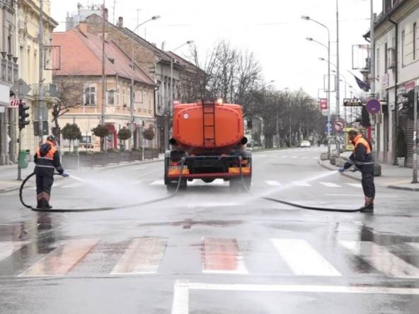 Detaljno su oprane sve ulice u Pančevu i to je bio prvi korak pre nego što se pristupilo dezinfekciji sa natrijum hipohloritom. Krenulo se od Bolnice, Doma zdravlja, Zavoda za javno zdravlje, a zatim je završena dezinfekcija svih ostalih objekata javne namene.