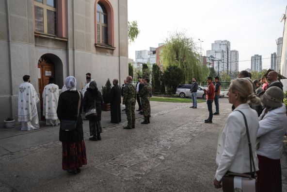 Ispred crkve na Bežanijskoj kosi su se pojavili vernici na današnjoj liturgiji povodom Uskrsa i pored apela nadležnih i sveštenstva da ne idu, kao i pored zabrane kretanja za sve građane!