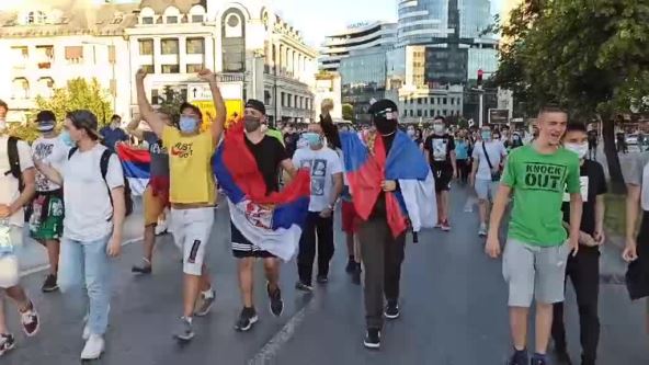 Reporter MONDA javlja da su nakon okupljanja demonstranti krenuli do policijske stanice kako bi podržali jednog od lidera protesta Mirana Pogarača, koji je uhapšen u sinoćnom sukobu sa policijom.