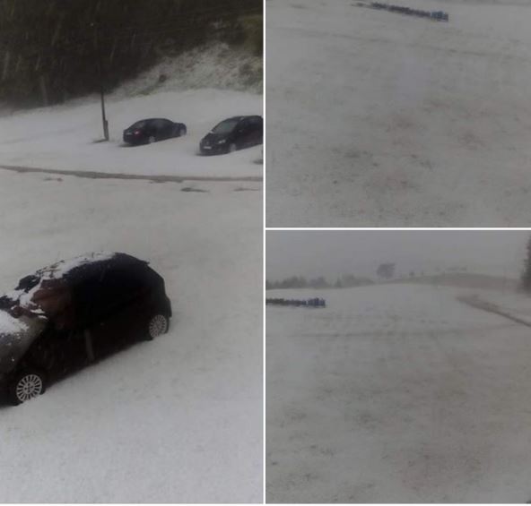 Krupan grad desetkovao je malinjake i polupao crpove na kućama i krovovima automobila. Za samo 15 minuta koliko je grad padao, pašnjaci su obeleli, a grad se mogao skupljati lopatama.
