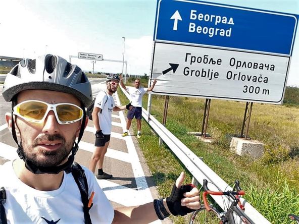 Iz Valjeva je u četiri sata ujutru najpre krenuo Kikanović, a nešto kasnije dvojac na biciklima koji ga je sustigao nekoliko minuta posle 12 sati i onda su zajedno nastavili dalje.