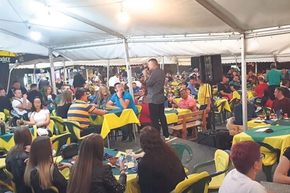 U nekoliko ugostiteljskih objekata i tri šatre orila se muzika, točilo se piće, posetioci su se gužvali dok su sedeli i po desetoro za jednim stolom, a trebalo bi da su na metar i po udaljeni, pevali i veselili se, a masku nije nosio skoro niko.