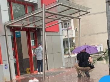 I dok je momak vidno pokisao, pas je uplašen od grmljavine i olujnih udara pljuska osetio sigurnost.