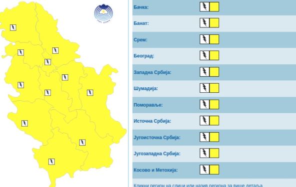 Republički hidrometeorološki zavod (RHMZ) objavio je danas novo upozorenje na lokalnu pojavu obilnih pljuskova sa grmljavinom na području Srbije.