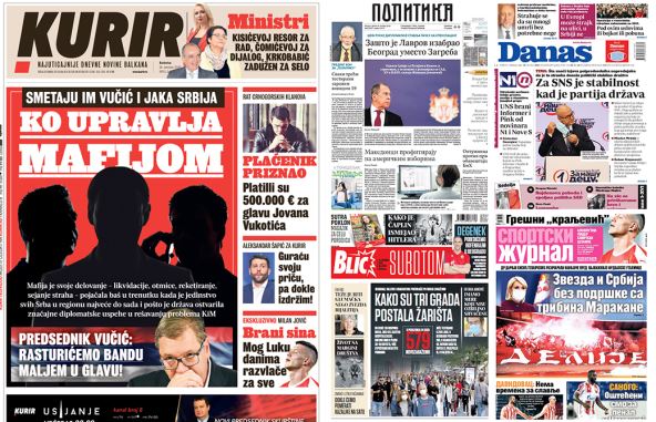 Dnevni listovi u Srbiji na naslovnim stranama pišu o društveno-političkim temama, a donose i ekskluzivne priče i intervjue.