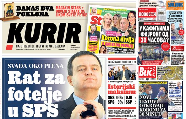 Dnevni listovi u izdanjima za utorak pišu o društveno-političkim temama - o novoj Vladi Srbije, situaciji s korona virusom i porastom broja zaraženih, mogućem uvođenju novih mera na suzbijanju zaraze...