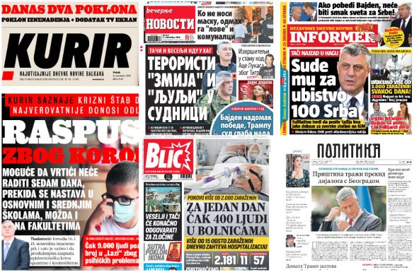 U petak ćete u beogradskoj štampi čitati o važnoj sednici kriznog štaba, haotičnim izborima za predsednika Amerike i odlasku bivših lidera "OVK" u Hag.
