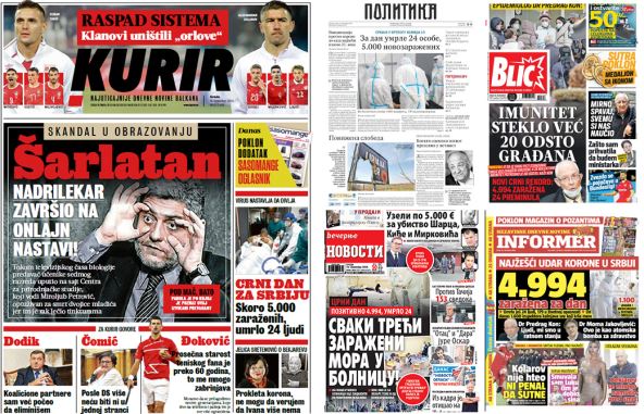U sutrašnjim izdanjima domaće štampe čitaćete o novom najtežem danu u Srbiji, "pucanju po šavovima" reprezentacije Srbije u fudbalu i o suđenju liderima terorističke "OVK" u Hagu.