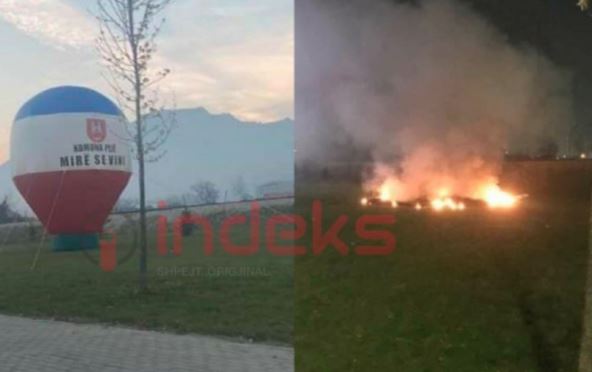 Za manje od 24 sata nakon što je postavljen, ovaj balon je zapaljen, potvrdila je kosovska policija.