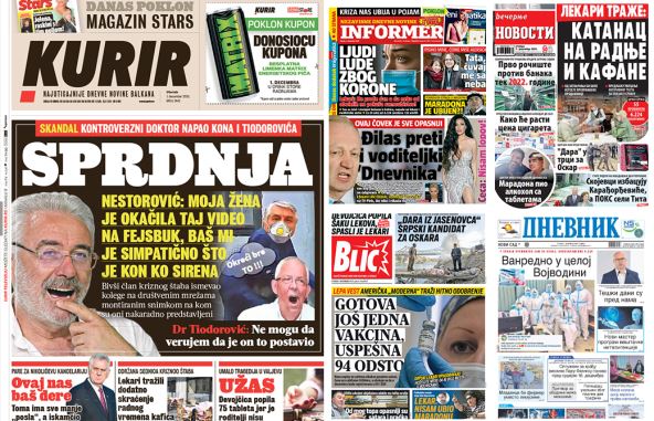 Domaća štampa u utorak donosi priču o zahtevima lekarskog dela Kriznog štaba prema Vladi, o kontroverznim objavama doktora Nestorovića i o stvaranju vaccine protiv korone.