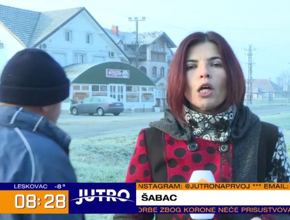 Dok je govorila o tome kako su pripadnici policije "zatekli četiri devojke sa tri klijenta" u program je upao slučajni prolaznik koji je krenuo da dobacuje i psuje novinarku Prve.