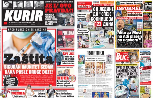 Vakcina protiv korona virusa koja stiže u Srbiju i nove mere suzbijanja širenja epidemije neke su od tema koje domaći mediji obrađuju u izdanjima za petak, 4. decembar.