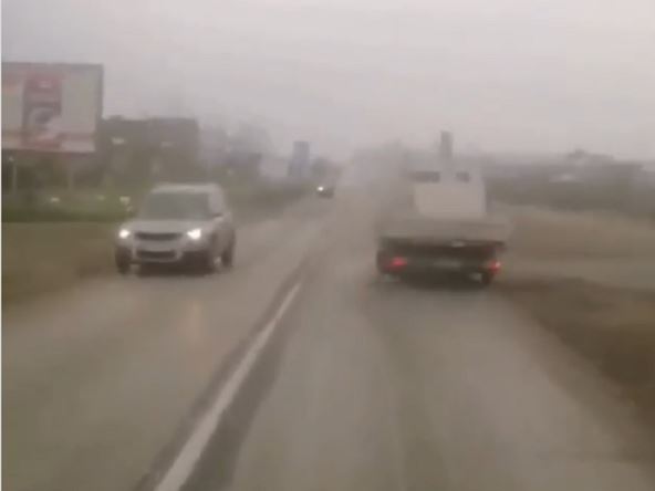 Na Rumenačkom putu u Novom Sadu snimljen je upozoravajući video. Na njemu se vidi natovareno vozilo koje krivuda po kolovozu usled jakih udara košave