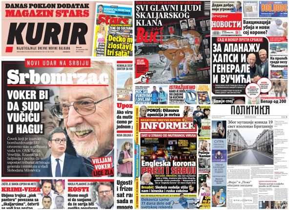 Na naslovnim stranama sutrašnjih izdanja dnevne štampe listovi donose priče o novoj mutiranoj koroni čije je žarište u Velikoj Britaniji, vakcini protiv korone, Kosovu i drugim aktuelnim političkim i društvenim tamama.