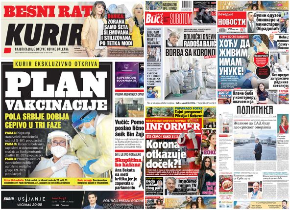 Beogradski dnevni listovi u izdanjima od subote najveću pažnju posvetili su početku vakcinacije u Srbiji, novom soju korona virusa koji se pojavljuje u sve više zemalja, novim merama pred novogodišnje praznike i drugim aktuelnim političkim i društvenim temama.