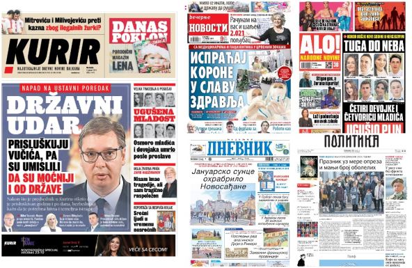 U nedelju će većina dnevnih listova objaviti svoja prva izdanja u novoj godini. Nažalost, svi se bave strašno tužnom temom - tragedijom u Hercegovini, gde je osmoro tinejdžera umrlo od gušenja plinom.