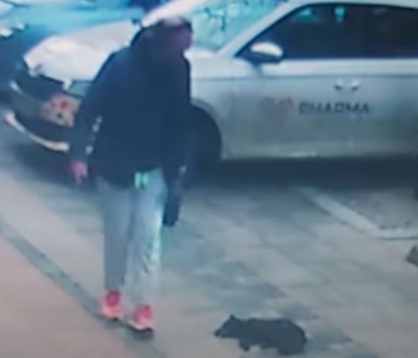 Životinja je od siline udarca odletela metar dalje i ostala da leži nepomično, a nasilnik je nonšalantno nastavio svojim putem, kao da se ništa nije dogodilo.