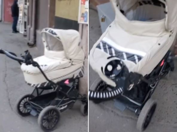 Autor snimka je toliko bio u neverici da je na kraju morao da se približi kolicima kako bi se uverio da nisu prazna i da je dete unutra.
