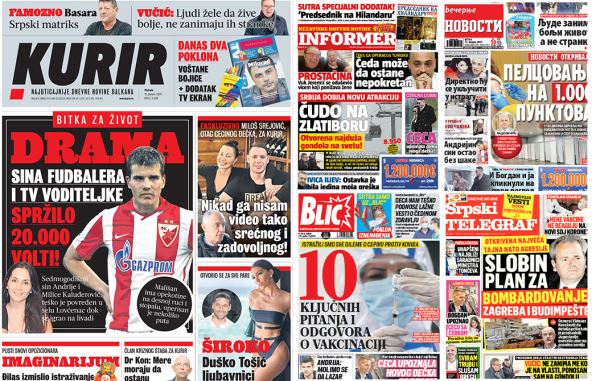 U izdanjima za petak, beogradski dnevni listovi najviše pišu o vakcinaciji protiv korone, zlatiborskoj gondoli, o Ceci i njenom novom dečku i drugim aktuelnim političkim i društvenim dešavanjima.