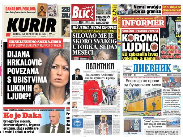 Dnevni listovi u Srbiji u izdanjima za sredu pišu o slučaju profesora Mike Aleksića, velikom odzivu građana Srbije za vakcinaciju, bivšoj državnoj sekretarki MUP-a Dijani Hrkalović i drugim aktuelnim političkim i društvenim temama.