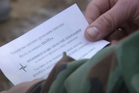"Bacaju nam letke i upozoravaju nas da se predamo, što nikada uraditi nećemo i što je van svake pameti", rekao je on, a potom pročitao šta piše na letku.