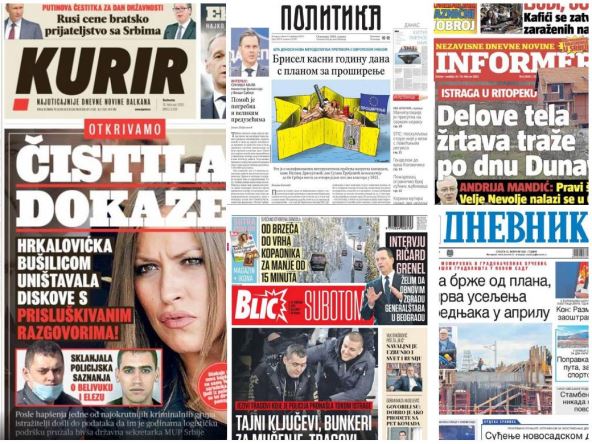 Dnevni listovi u Srbiji na naslovnim stranama izdanja za subotu se i dalje najviše bave dešavanjima vezanim za hapšenje grupe okupljene oko Veljka Belivuka.