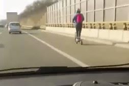 Kako se može videti na videu koji je usnimljen iz automobila, trotinet se autoputem kretao čak 80 kilometara na čas.