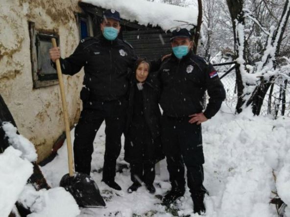 Policijski službenici PS Babušnica Aleksandar Đorđević, Branislav Tančić i Nenad Bošković otišli su kod nje i očistili sneg da baka može da izađe iz kuće. Njihovo delo treba da bude primer svima!