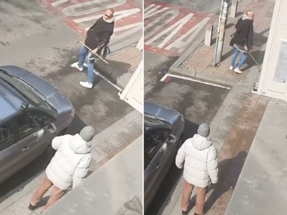 Ovaj snimak je navodno nastao u Cetinjskoj ulici u centru Beograda, a na njemu se vidi kako jedan muškarac vređa starijeg čoveka na engleskom jeziku.