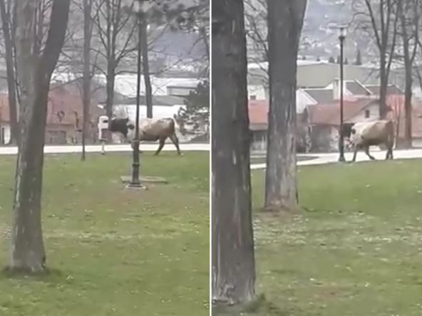 Tako je bik šetao pored Doma zdravlja, a onda se uputio ga zgradi SUP-a, da bi na kraju završio u gradskom parku gde su se nalazili brojni građani koji su svedočili ovoj nesvakidašnjoj situaciji.