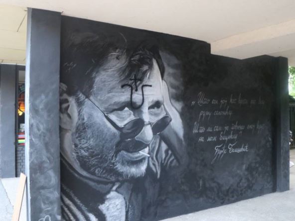 Kako prenosi portal 021.rs, na muralu Đorđa Balaševića u Fruškogorskoj ulici kod broja 30, nažvrljan je ustaški simbol slovo "U" sa krstom.