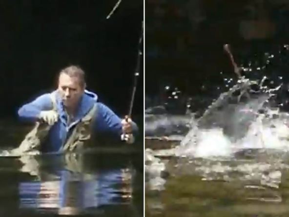 Naime, dok je muž uživao u pecanju, supruga je stajala na obali i čekala ga da izađe iz potoka u koji je ušao da bi imao što bolji pristup ribi. Međutim, bio je dovoljan jedan pogrešan korak prilikom vraćanja na obalu, te je nesrećni muškarac završio ispod vode, sa sve štapom i opremom.