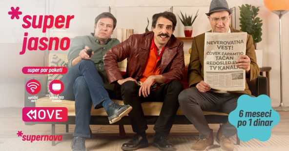 Super par MOVE paketi kablovskog operatora Supernova imaju super jasnu ponudu – super televizija i super brzi internet na jednom mestu! Više od 260 TV i radio kanala, neograničeni optički internet, tri naloga za mobilne uređaje, vraćanje programa čak do sedam dana unazad i pristup Video klubu čine odluku super lakom, a ako vam je potrebno još informacija poslušajte šta Čvarkov, Boškić i Torbica imaju da kažu na ovu temu!