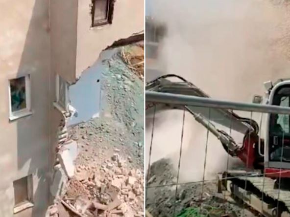 Stefan Hinić, jedan od stanara zgrade u Vidovdanskoj ulici, kaže da su pre oko sat vremena došli da ubiđu zgradu i da su u tom trenutku na licu mesta zatekli bageristu koji je zatrpavao rupe.