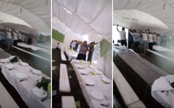 Međutim, ovo nije uspelo da spreči goste da "spasu" proslavu - isplivao je video sa slavlja u Brajkovcu gde vidimo kako se gosti svim silama bore da zadrže na mestu šator koji se opasno lelujao na vetru.