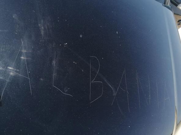 Tokom odmora na Halkidikiju u letovalištu Nea Kalikratija na automobilu beogradskih registarskih oznaka oštrim predmetom je ispisana reč "Albania!".