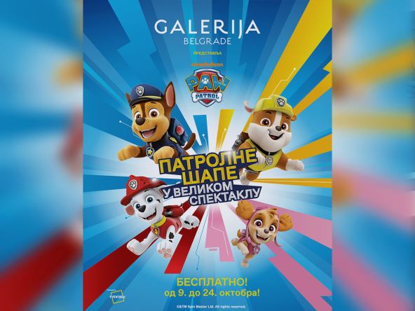 Dođite i prepustite se avanturi sa omiljenom družinom svih mališana! Nikelodeonove “Patrolne šape u velikom spektaklu“ organizuje Galerija u saradnji sa Nikelodeon-om, Spin Master-om i EventBox-om. Ovaj događaj je ekskluzivno dostupan u Galeriji od 9. do 24. oktobra svakog dana od 13 do 21 sati a ulaz je besplatan.
