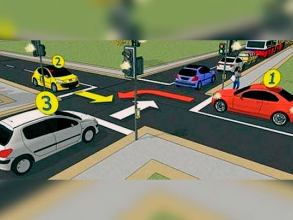 Na internetu se može pronaći mnogo testova, a pojedini teraju čak i iskusne vozače da se ozbiljno zamisle. U situaciji prikazanoj na slici semafori na raskrsnici ne rade, a plavi automobil je zatvorio ulaz u raskrsnicu za auto broj 3 koji se nalazi iza njega, pred ulazom u raskrsnicu.