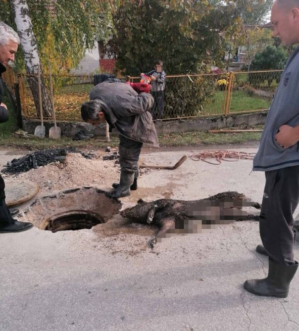 Kada su nadležne ekipe stigle na teren i krenule da otklanjaju kvar u kanalizaciji su pronašli ni manje, ni više nego celu mrtvu svinju, tešku preko sto kilograma.