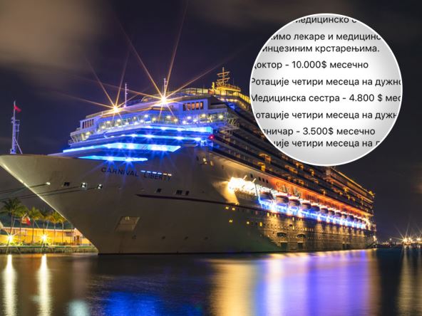 Koliko se promenio odnos tržišta rada prema medicinskom osoblju , ali i odnos lekara i medicinskih sestara prema krajnje primamljivim ponudama, pokazuje i oglas firme koja zapošljava na kruzerima i pri tome nudi, za evropske uslove, prilično veliku mesečnu platu.
