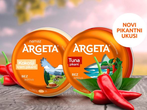 Nastavljajući uspešnu priču proizvoda koji su nastali sa idejom da prate globalne trendove i prilagođavaju ih potrebama lokalnih potrošača, Argeta je lansirala dva nova namaza - Kokošiji Krem pikant i Tuna pikant, koji već u samom nazivu najavljuju pikantno iznenađenje za sve ljubitelje namaza vrhunskog kvaliteta i malo intenzivnijeg ukusa. Uz dodate prirodne začine, biljna ulja, i pavlaku kod Kokošijeg namaza, novi Argeta proizvodi su super ukusni i lako mazivi.