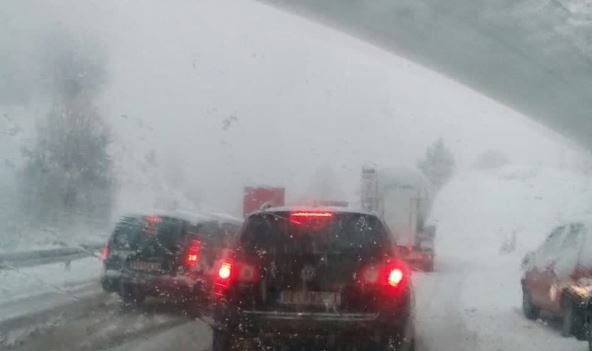 Sneg koji je tokom prethodnih sati padao na teritoriji Zlatibora napravio je kolaps u saobraćaju. Do zastoja je došlo ispred jednog od tunela koji vodi do ove planine.