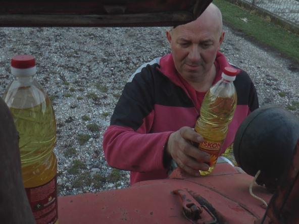 "Sada je cena litre nafte i litre skoro izjednačena, ali najbliža pumpa je od mog sela udaljena oko 30 kilometara, tako da mi je isplativije da sipam jestivo ulje u rezervoar. Kupim ga u najbližoj prodavnici i na to ide moja mašina. Na taj način su na mom imanju obavljeni prvi prolećni radovi i priprema za setvu", kaže poljoprivrednik Dragan Jovanović iz Topole.