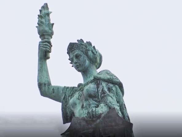 Ovo umetničko delo nije uvek izgledalo ovako. Prema poznatoj priči, komunisti su posle Drugog svetskog rata isekli skulpturu, odsekli devojci ruku i umesto krune zavarili drugu ruku koja drži baklju. Zbog toga ova bista podseća na Kip slobode u Njujorku.